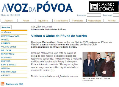 Governador do Distrito 1970:Henrique Maria Alves Presidente do Rotary C. P. Varzim: Carlos Costa