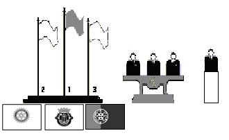 9. A Ban­deira Nacional e as outras (a ordem considera-se vista da mesa para a sala):